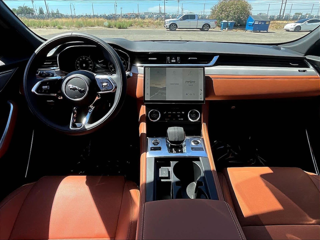 Navigation, Sunroof, Panoramic Roof, All Wheel Drive, Power Liftgate. Jaguar R-Dynamic S with Santorini Black Metallic exterior and Siena Tan/Ebony/Siena Tan interior features a 4 Cylinder Engine with 246 HP at 5500 RPM*.